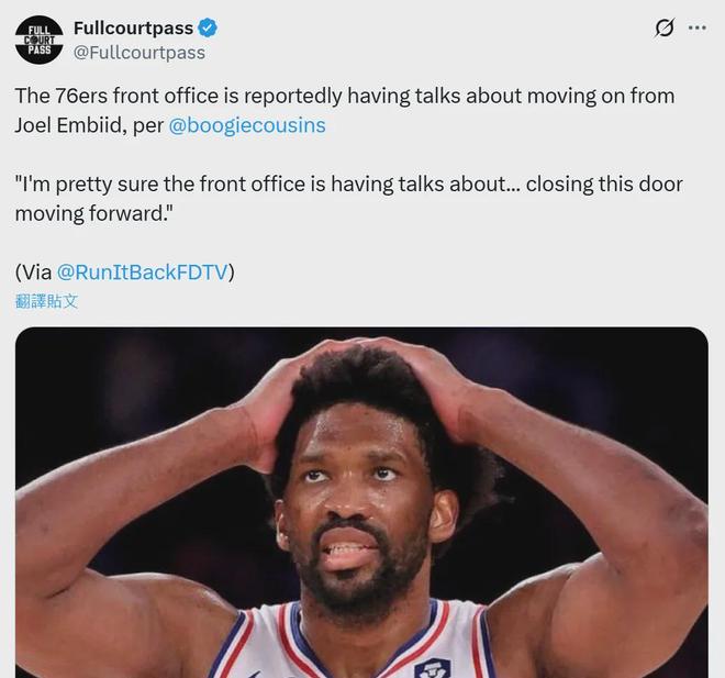 “我非常確定76人管理層正在討論這件事,討論這看起來會是什么樣子,可能性有多大,以及他們是否應該考慮今后關閉這扇門(送走恩比德)?!笨夹了拐f道。