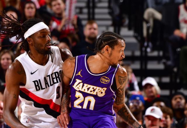 尼克·史密斯在第二節中段重新上場,他連續兩次助攻八村壘得分,然后自己終于迎來了得分機會,他突破上籃得分,隨后他連進兩記三分球,幫助湖人追分。湖人半場52比53落后開拓者1分。